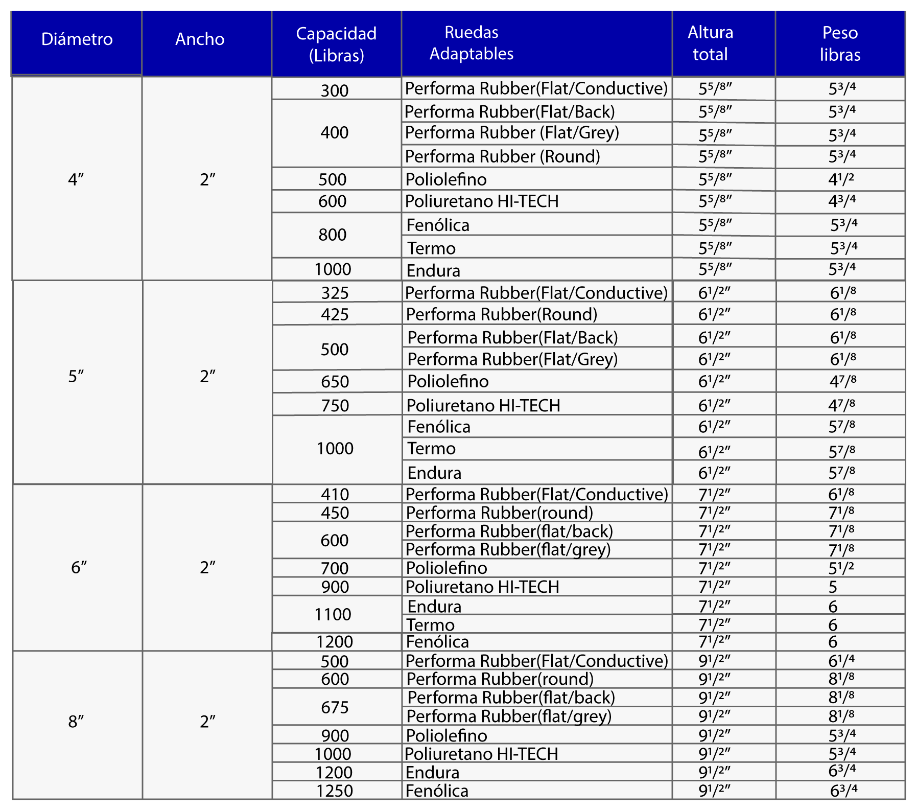 RODAJAS EN ACERO INOXIDABLE CON PLATOS GIRATORIOS Y FIJOS CAPACIDAD DE CARGA DE HASTA 325 lbs.